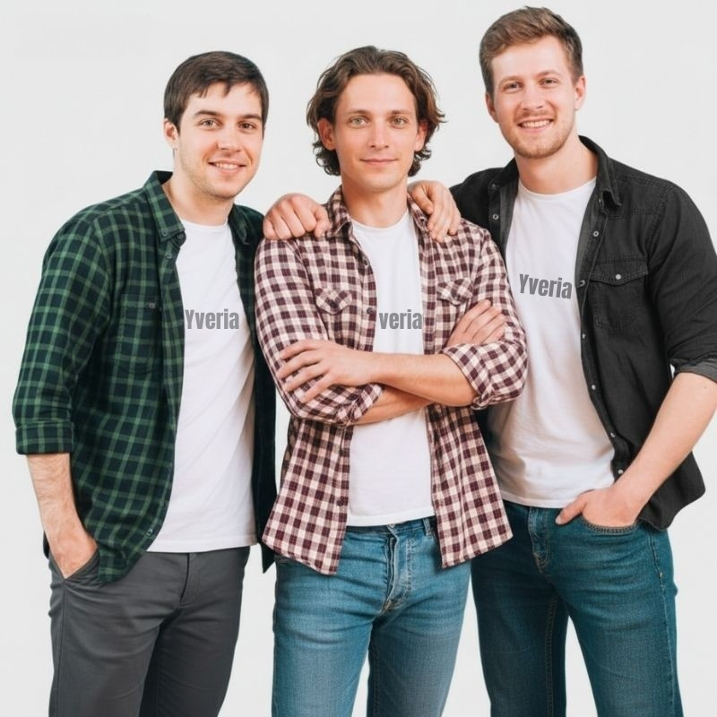 Joan (167 cm), David (169 cm) et Alexandre (177 cm) sont les fondateurs de Yveria.