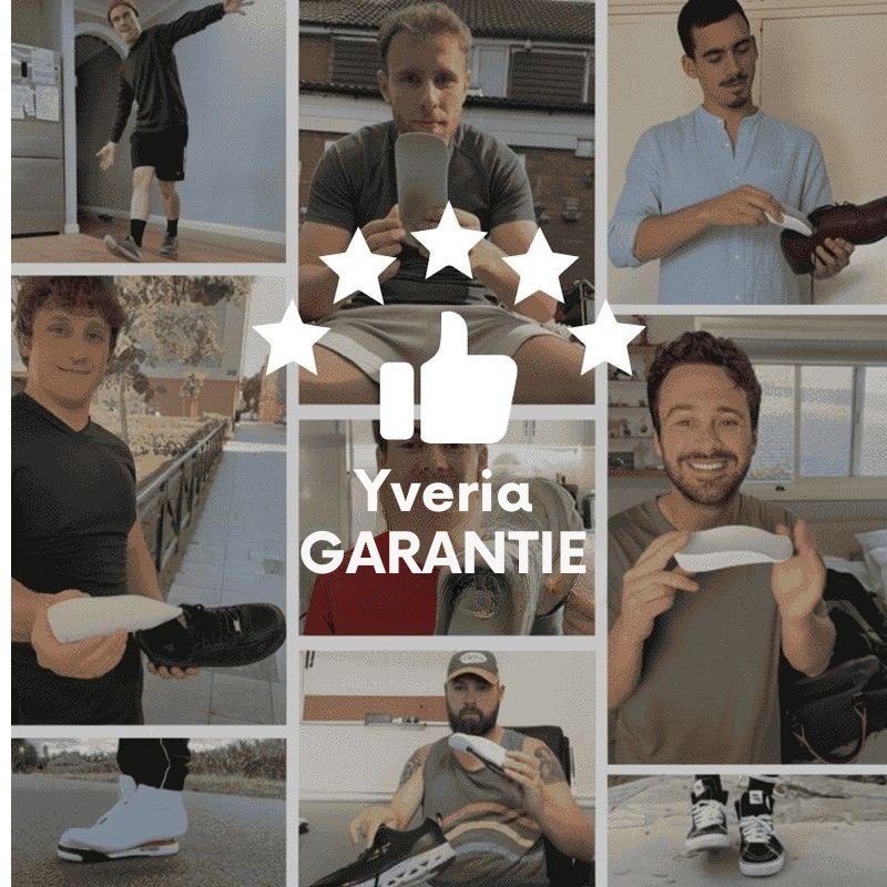 La forme orthopédique révolutionnaire des semelles Yveria offre un confort maximal sans perte de hauteur. Ainsi, tu parais plus grand tout en protégeant tes articulations.